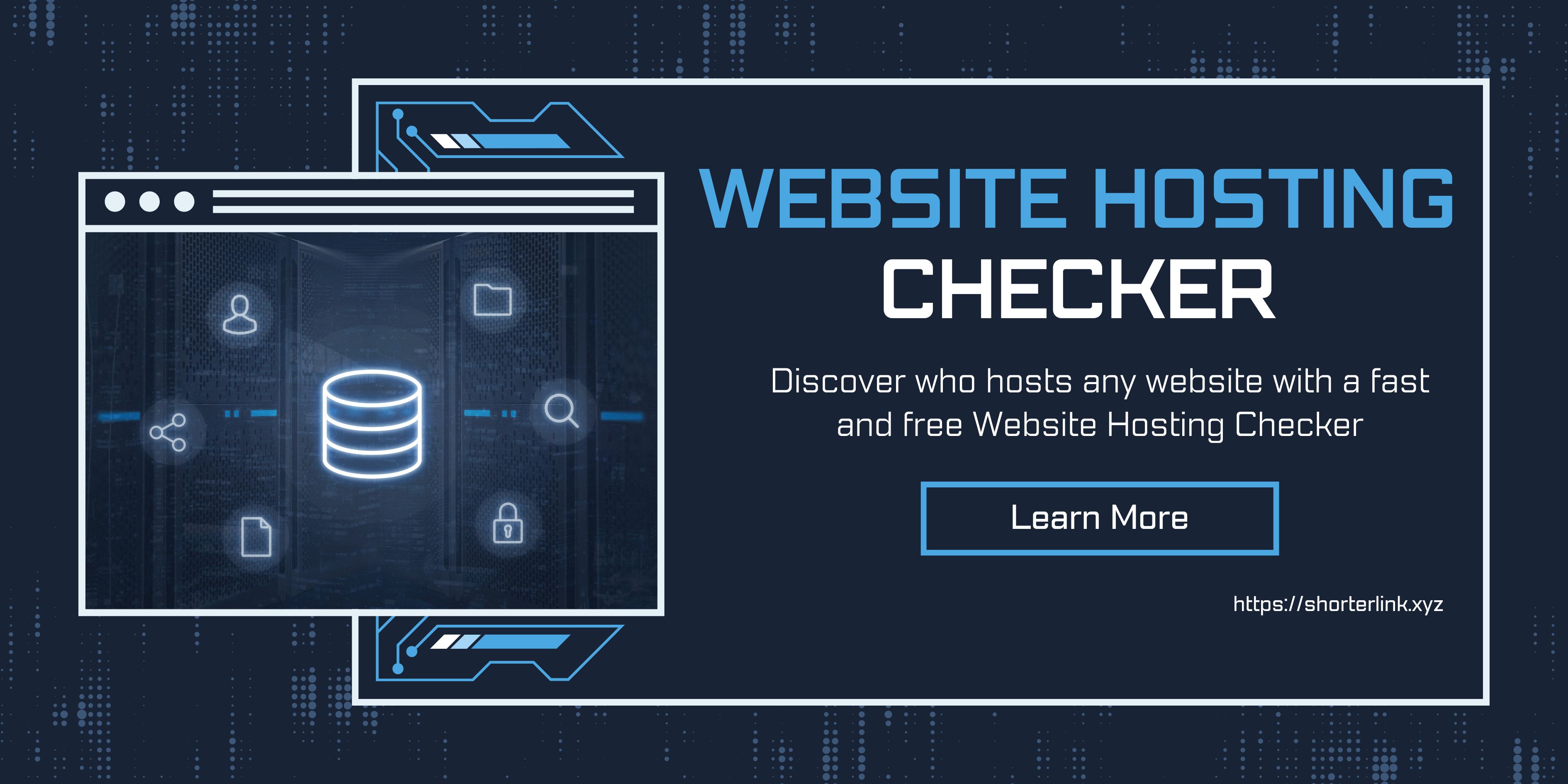 Discover who hosts any website with a fast and free Website Hosting Checker. Use Shorterlink.xyz to find hosting providers, IP address info, and server location instantly.